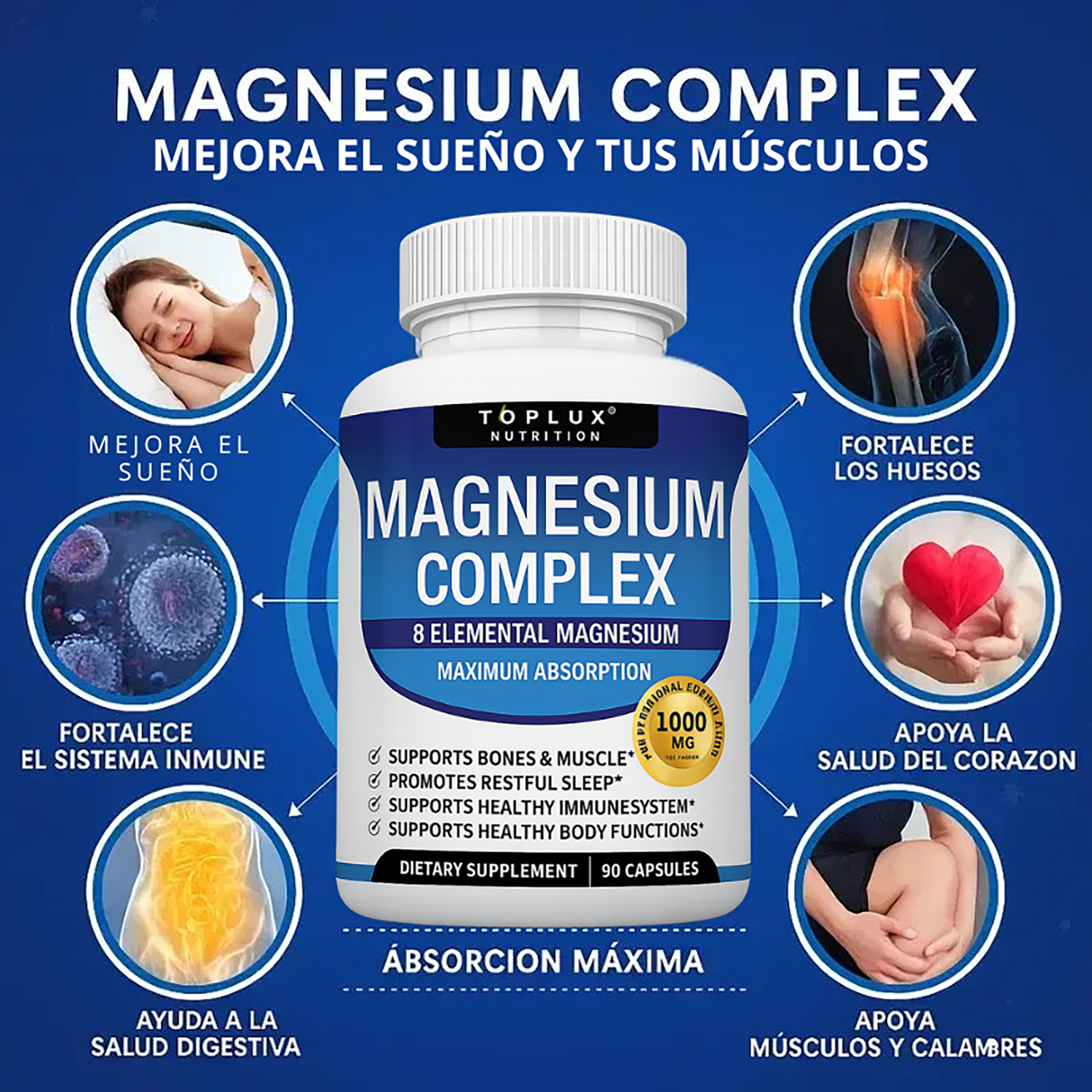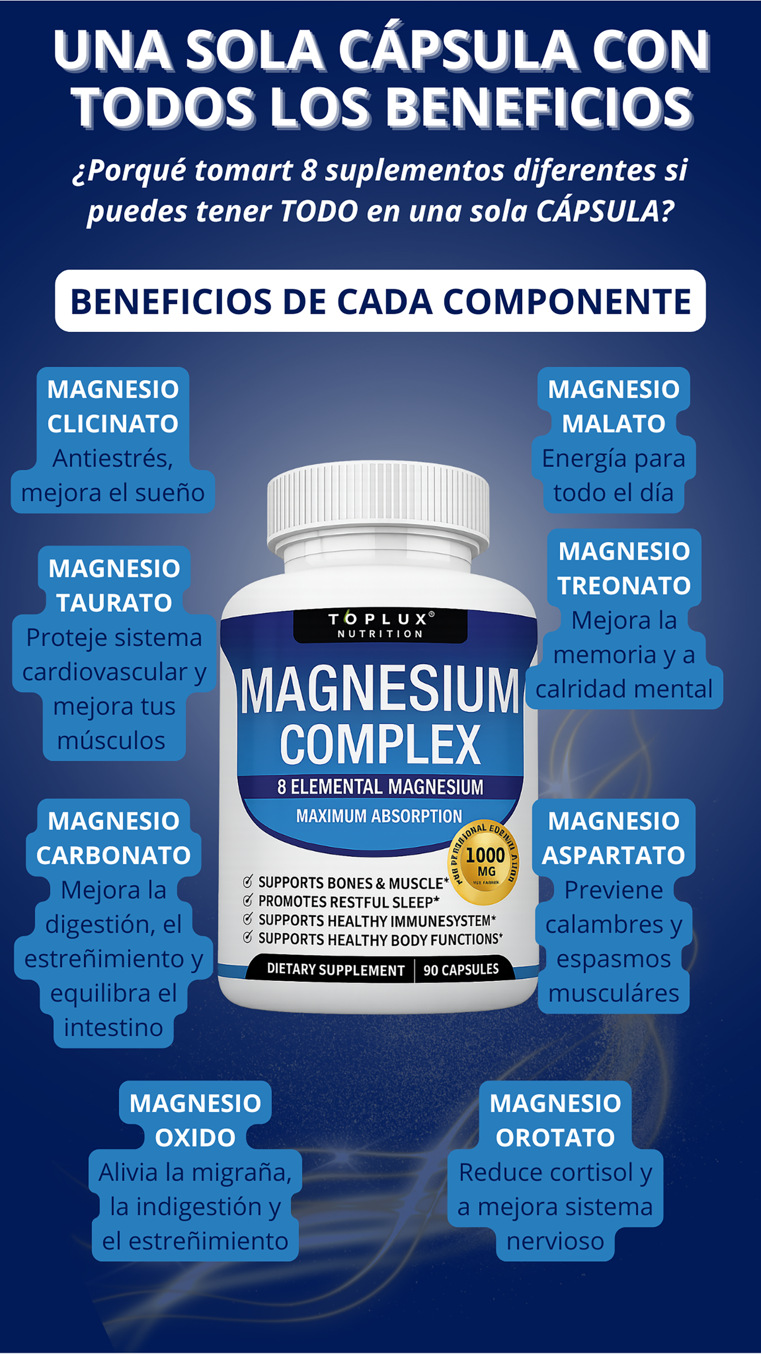 COMPLEJO DE MAGNESIO 8 EN 1-Producto 100% Americano - 60 caps